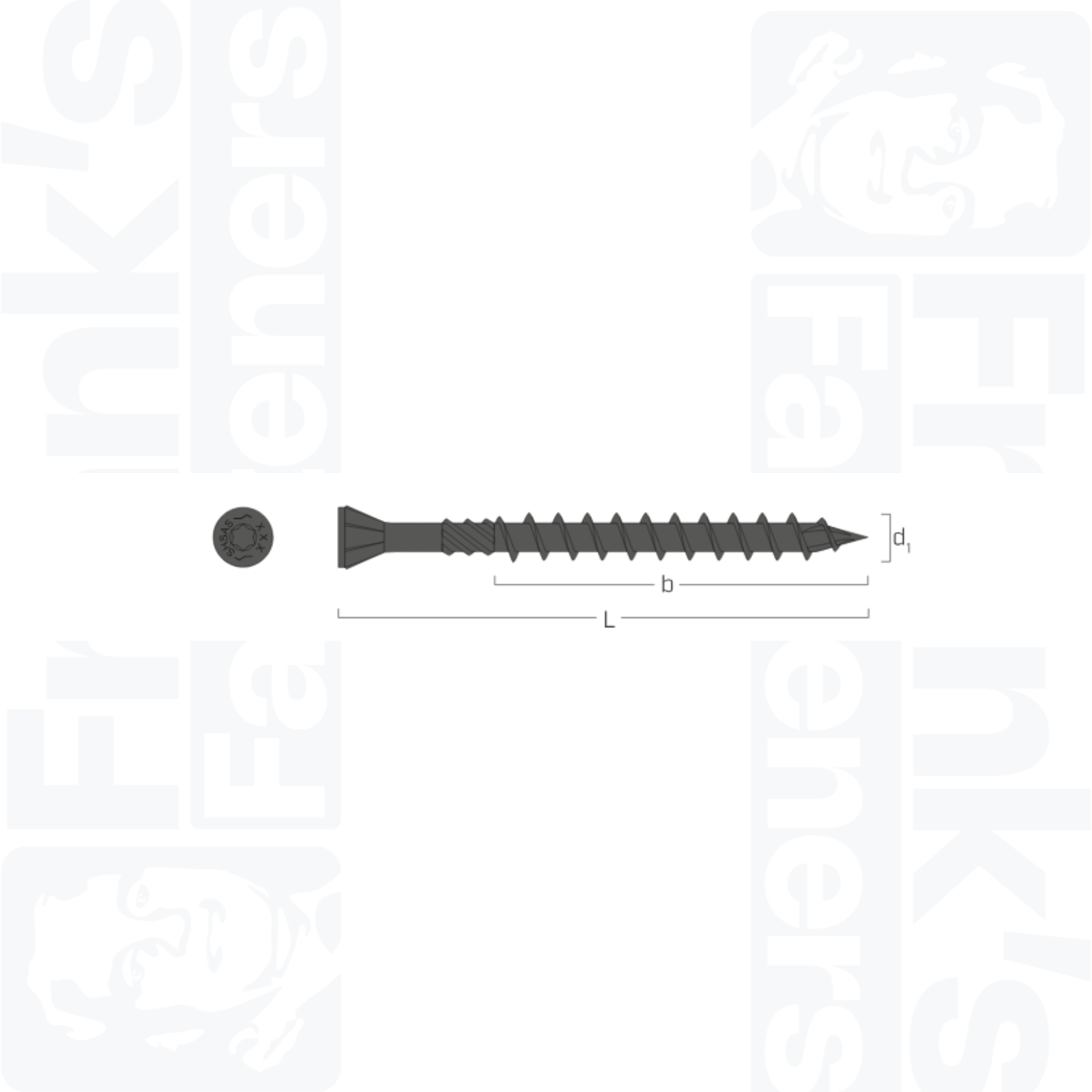 4.5 x 60mm Small Head Tx Countersunk Screw, Stainless Steel AISI 410 Black