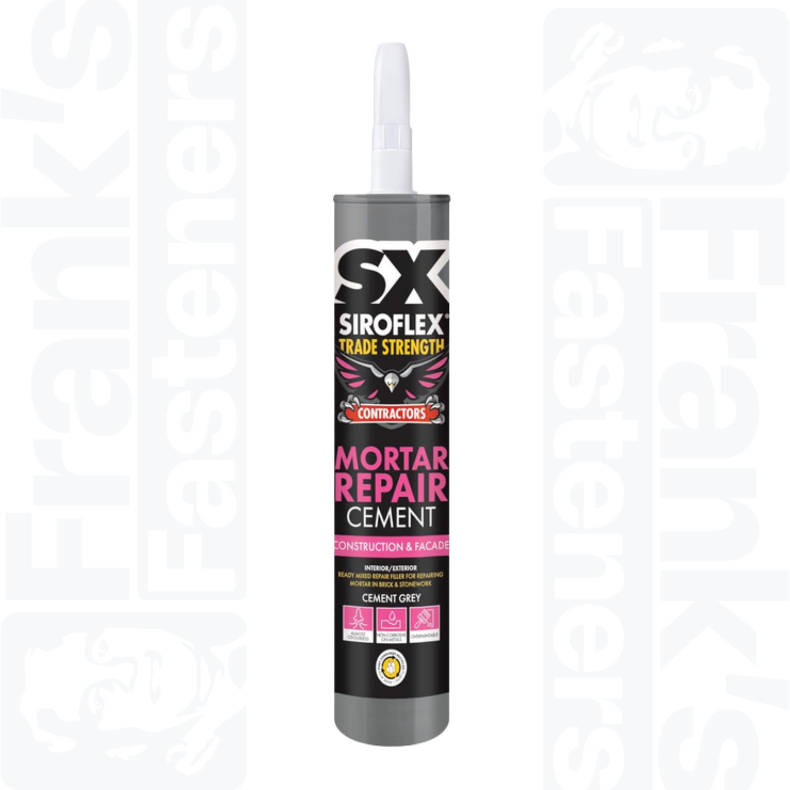 Siroflex Mortar Repair Cement is a ready mixed repair filler for repairing mortar in brick and stonework. It is specially developed for repairing damages mortar joing quickly, without the need to mix sand and cement. It will adhere without primer, even on slightly damp surfaces. Suitable for interior and exterior applications for the restoration and repair of damaged masonry between brick and stonework. Also for repairing cracks and damaged stone edges. Can be used to seal joints between tiles, stone and brick slips and pointing around lead flashing.
