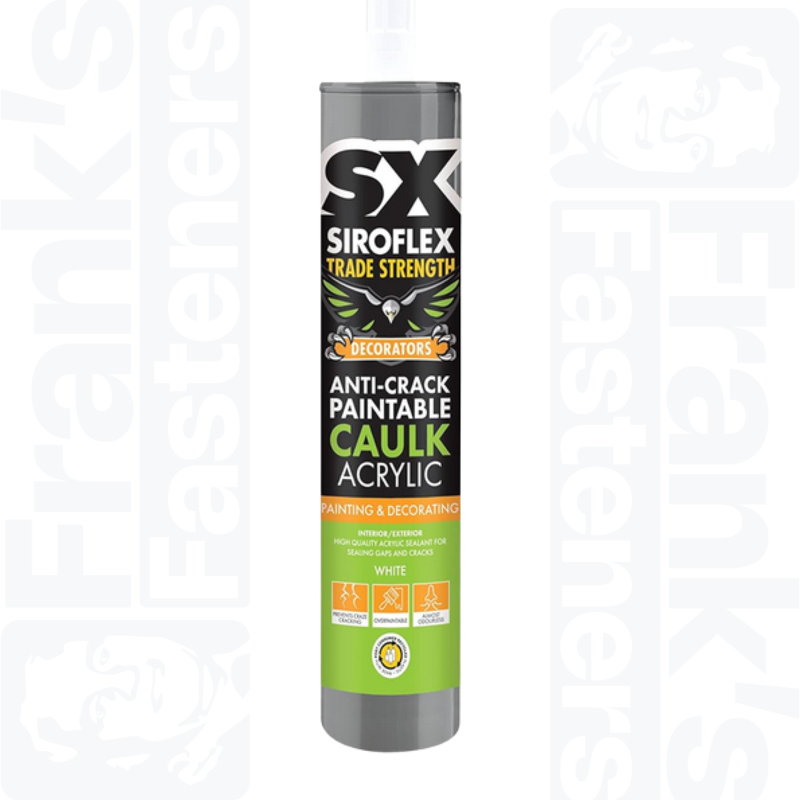 Achieve a flawless, long-lasting finish with SX Siroflex Decorators Anti-Crack Caulk, a premium acrylic sealant designed to prevent paint cracking and discoloration. Perfect for decorators, DIYers, and professionals, this advanced formula offers smooth application, excellent adhesion, and a finish that’s ready for paint.